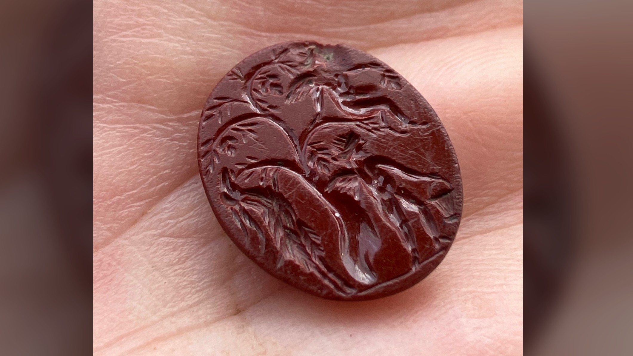 A pedra preciosa, originalmente incrustada em um anel de sinete, foi descoberta durante a quinta temporada de escavações em Bremenium, um forte romano localizado a aproximadamente 39 quilômetros ao norte da Muralha de Adriano. O desenho intrincado mostra duas figuras aladas de Cupido colhendo uvas de uma árvore, acompanhadas por uma criatura parecida com uma cabra que se ergue nas patas traseiras. De acordo com Richard Carlton, arqueólogo da Universidade de Newcastle e diretor de escavações, estas imagens são excepcionalmente raras no norte da Europa. A gema provavelmente foi usada por um romano como selo de correspondência pessoal, indicando um nível de sofisticação e conexão com as tradições artísticas romanas.